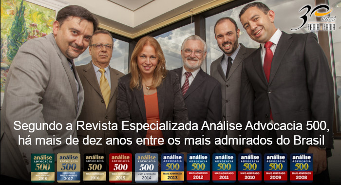 O FARIA E FARIA ADVOGADOS ASSOCIADOS foi eleito novamente um dos escritórios mais admirados do Brasil na Edição 2018 do anuário Análise Advocacia 500. Fomos o destaque NACIONAL na categoria de Escritórios Especializados em Direito Penal e Especializado no setor Eletroeletrônico.